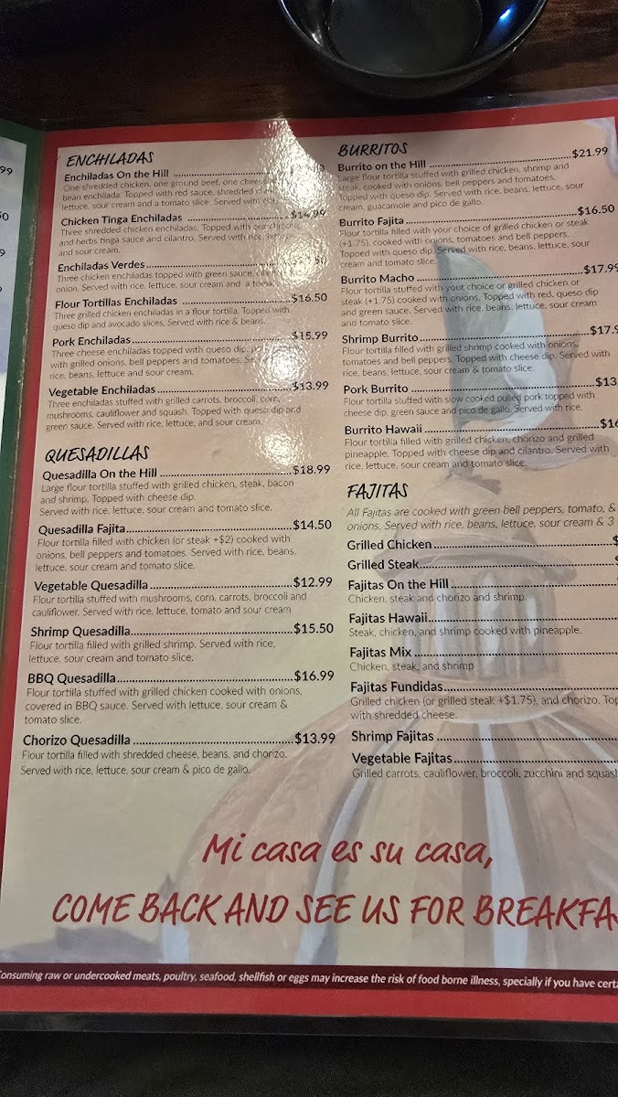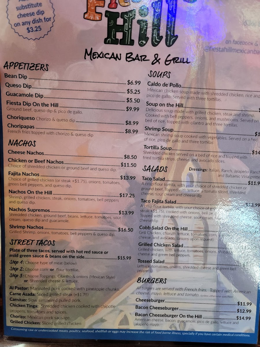 Introducing the Menu at Fiesta Hill Mexican Bar & Grill